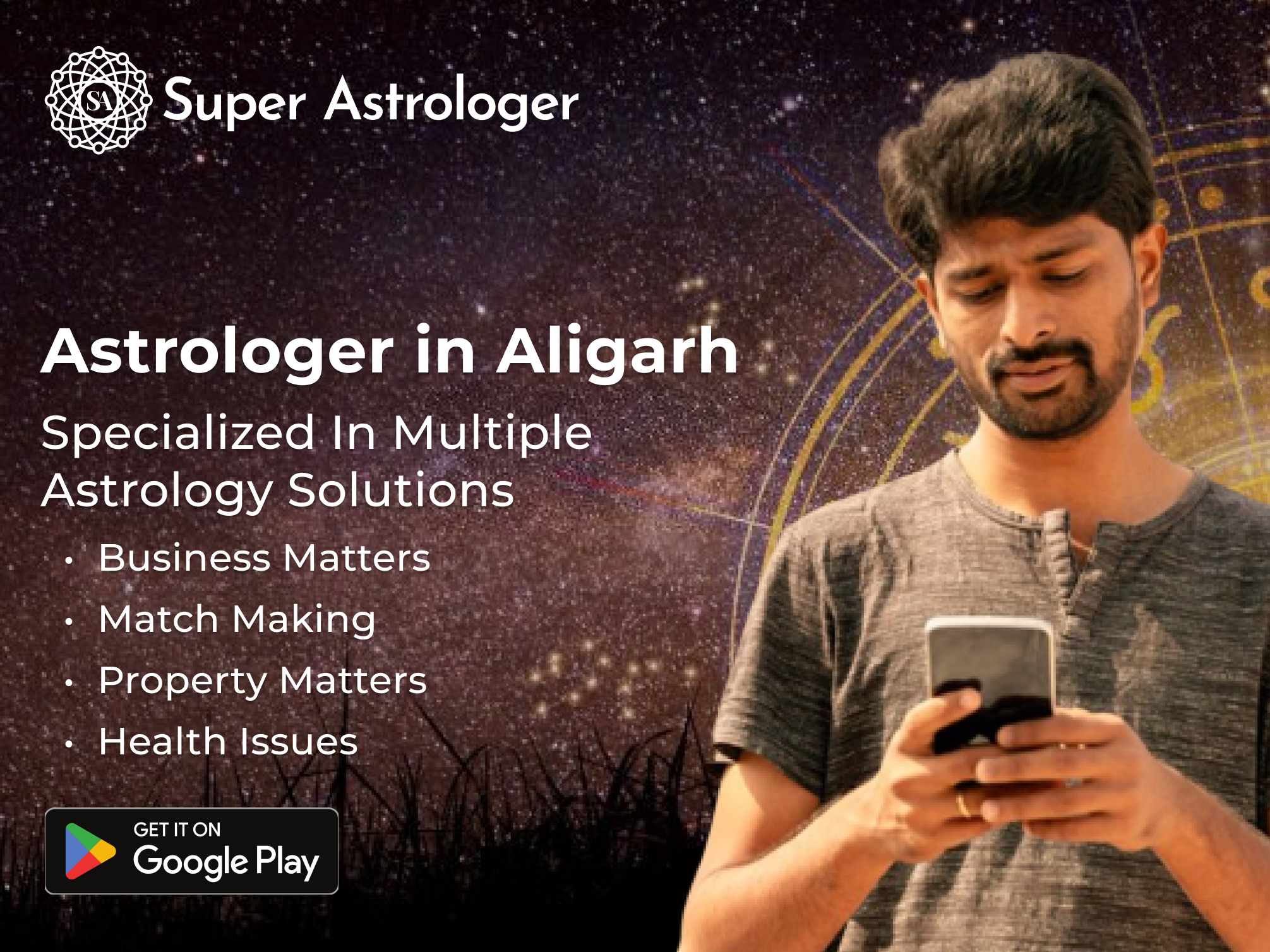 Whether you are looking for advice on marriage, love life, career, children, or any other aspect of life, you can rely on SuperAstroto, the best astrologer in Aligarh to provide you with genuine advice and predictions. Our astrologers guide you on how to overcome various hurdles that might be hampering your life and help you live a happy, prosperous and healthy life.