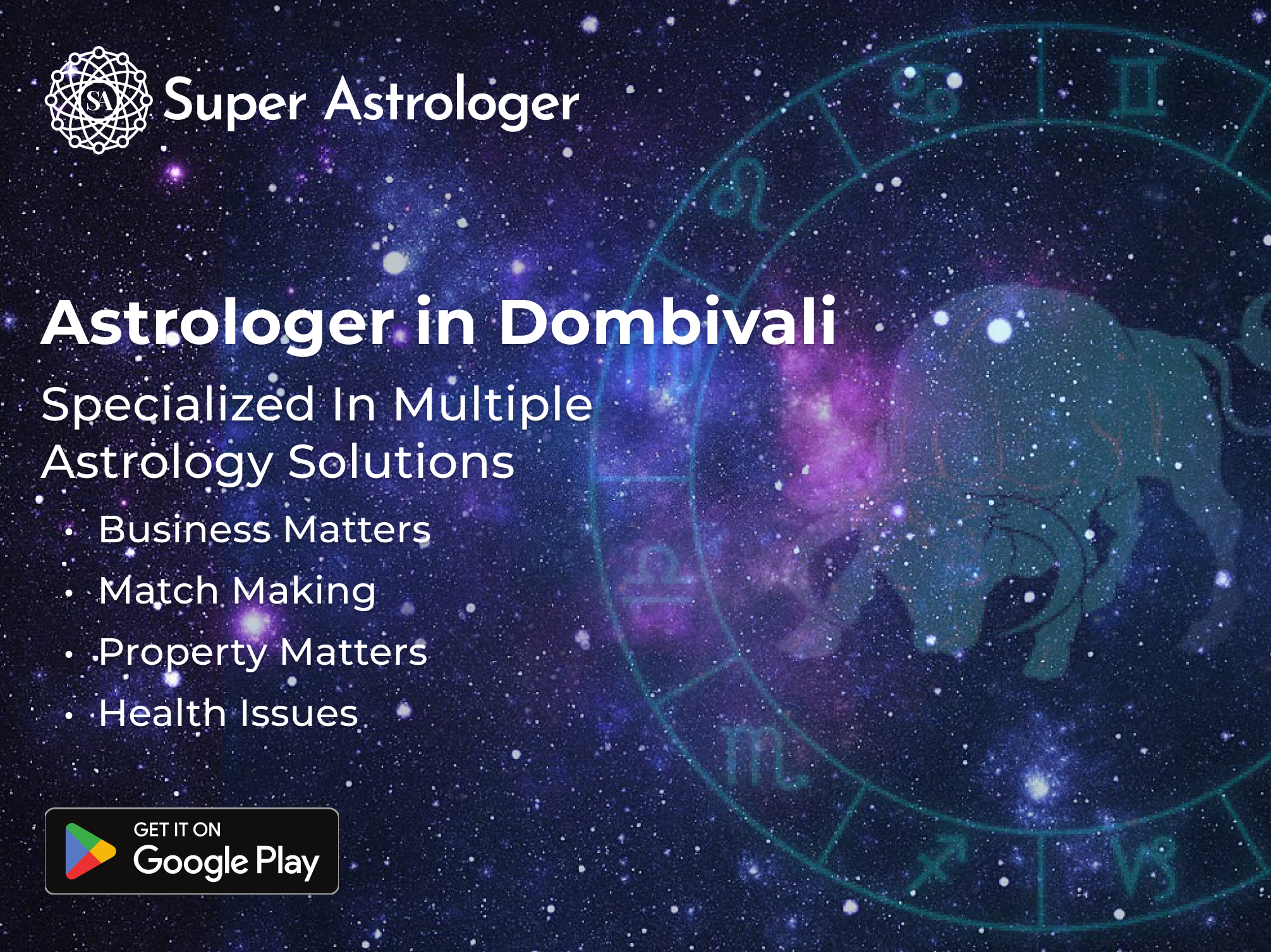 If you're looking for reliable and accurate astrology services in Dombivli, look no further than our experienced and knowledgeable team of astrologers. We offer a wide range of services, including natal chart analysis, horoscope matching, gemstone recommendations, tarot card readings, and more. Our goal is to help you gain a deeper understanding of yourself and your life, and provide personalized guidance to help you navigate the challenges and opportunities that come your way. With our astrology services in Dombivli, you can unlock the power of astrology and make informed decisions about your future. Contact us today via www.superastrologer.com to learn more about our services and schedule a consultation with our team of trusted astrologers in Dombivli. Contact an astrologer in Dombivli at +91-9369152829 today to schedule an astrology consultation.