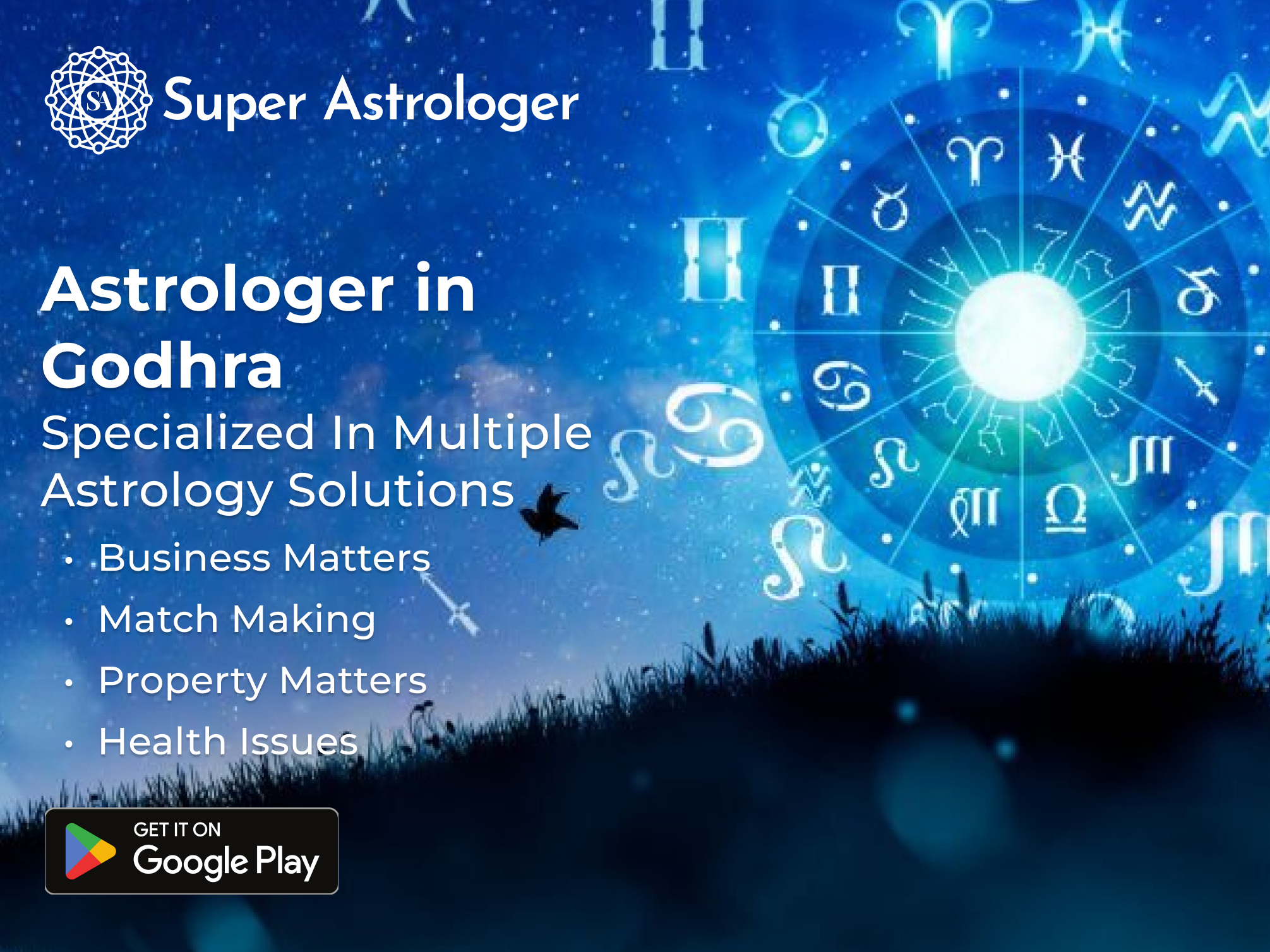 Astrology services in Godhra are not only limited to individual readings. They also offer services to businesses, organizations, and communities. These services can include astrological consulting, event planning, and business astrology. Astrological consulting can help businesses make informed decisions about their future and make plans to achieve their goals. Event planning services can help individuals and organizations plan events that are in harmony with astrological transits and eclipses. Business astrology can provide insights into the success of a business, the performance of its employees, and the potential for growth and expansion. Super Astrologer App allows you to book a consultation with an astrologer in Godhra for career guidance, love life, health and business.
