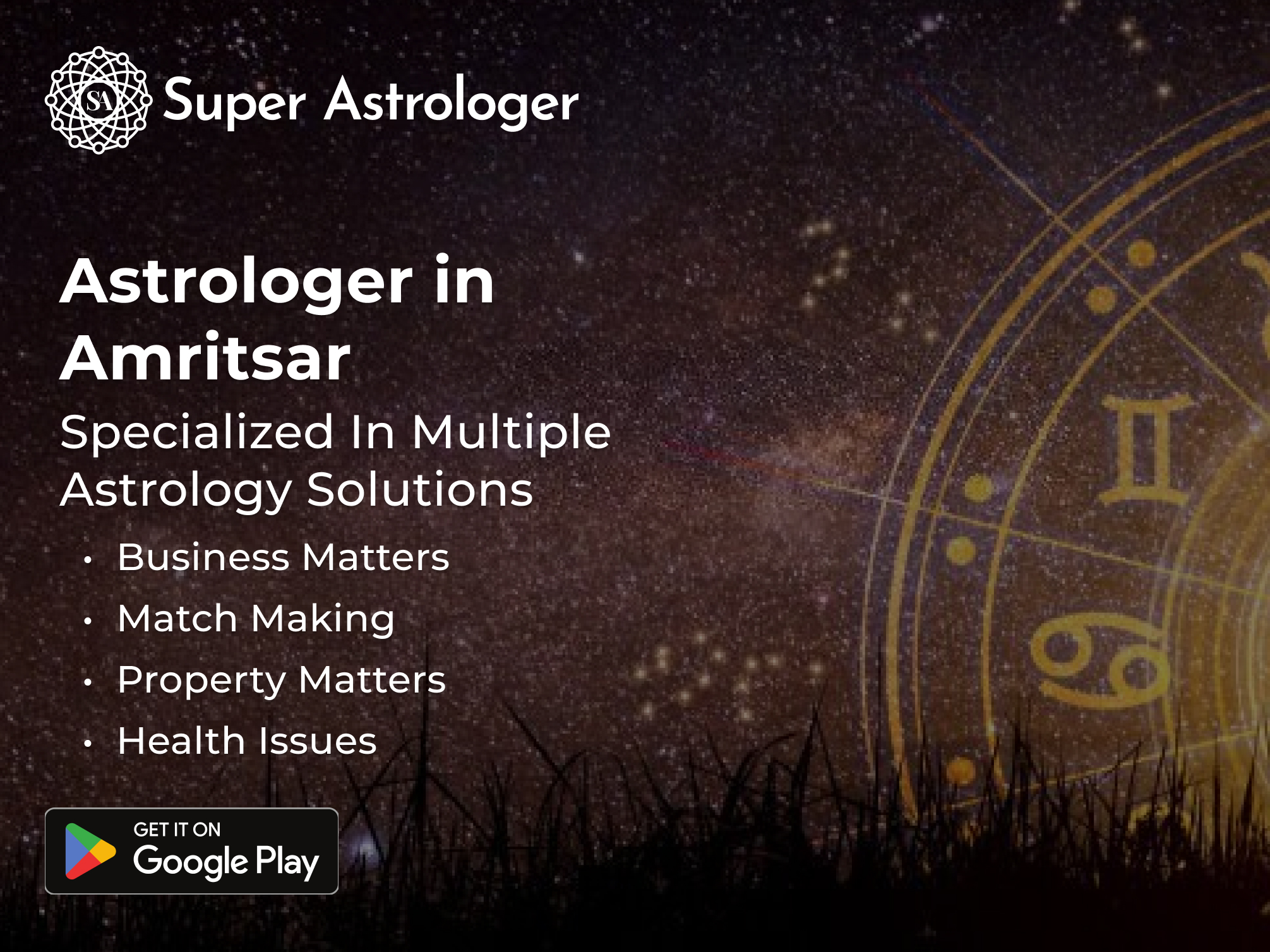Embark on a journey of self-discovery with our highly-qualified astrologers in Amritsar. At Super Astrologer, our experts decode the celestial language to offer transformative insights that shape your life's path. From relationships to career and love solutions, our adept astrology services cover it all. Connect with an experienced Jyotish in Amritsar and embrace the profound wisdom of the cosmos. Experience the empowering influence of astrology, guiding your life's trajectory. For top-notch online astrologer consultation in Amritsar, download the Super Astrologer app today!