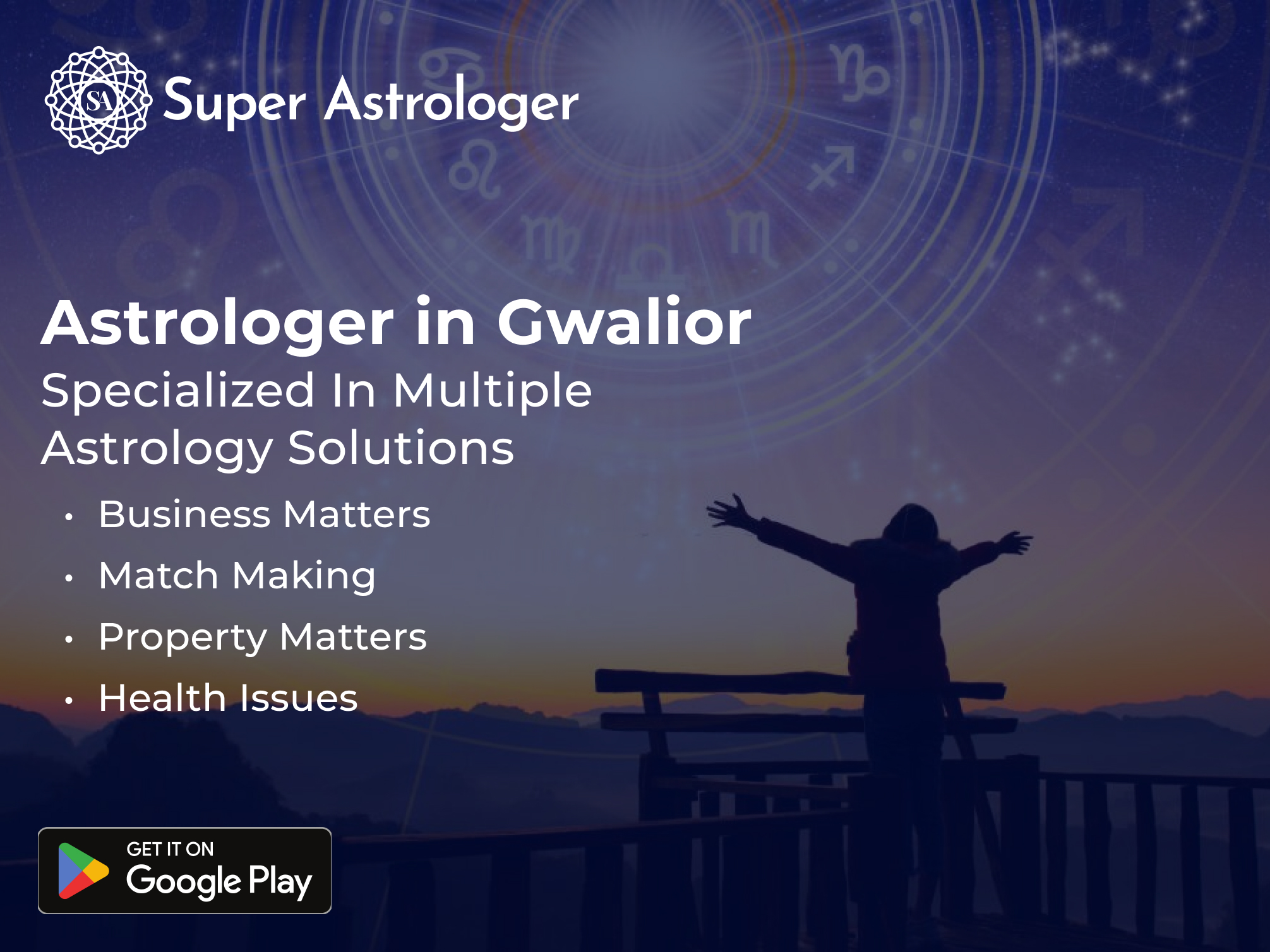 Super Astrologer lists the most experienced astrologers in Gwalior on its website. You can consult them according to their specialization from our website www.superastrologer.com or download the Super Astrologer app.