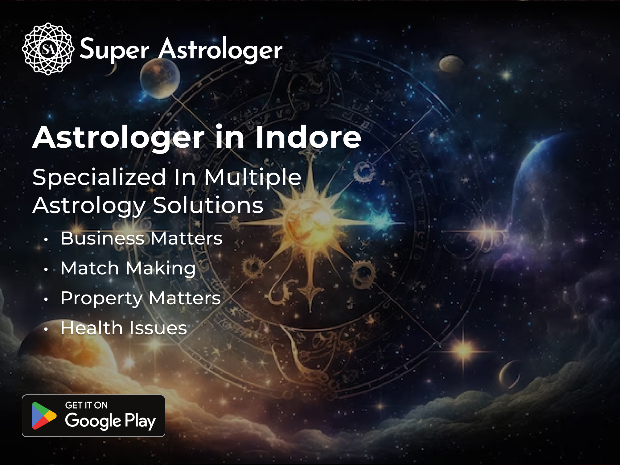 Discover a journey of self-exploration with our highly skilled astrologers in Indore. At Super Astrologer, our experts decipher the language of the stars to provide eye-opening insights that shape the course of your life. Covering areas from relationships to careers and matters of the heart, our proficient astrological services encompass a wide spectrum. Join forces with a seasoned Jyotish in Indore and embrace the profound wisdom of the universe. Feel the empowering impact of astrology as it steers the trajectory of your life. For exceptional online astrologer consultation in Indore, get the Super Astrologer app today!