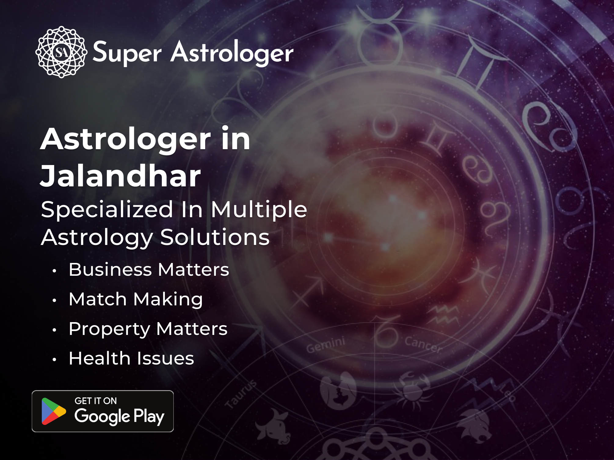 Experience the transformative impact of astrology with our genuine astrologer in Jalandhar. Our skilled Jyotish in Jalandhar experts provide invaluable insights into various aspects of life, from relationships to careers. Through the power of celestial alignments, we help you make rewarding decisions and navigate life's complexities. Embrace the wisdom of the cosmos and embark on a path of self-discovery and growth. For the finest online astrologer consultation in Jalandhar, access the Super Astrologer app and embark on a journey of enlightenment and empowerment in life.