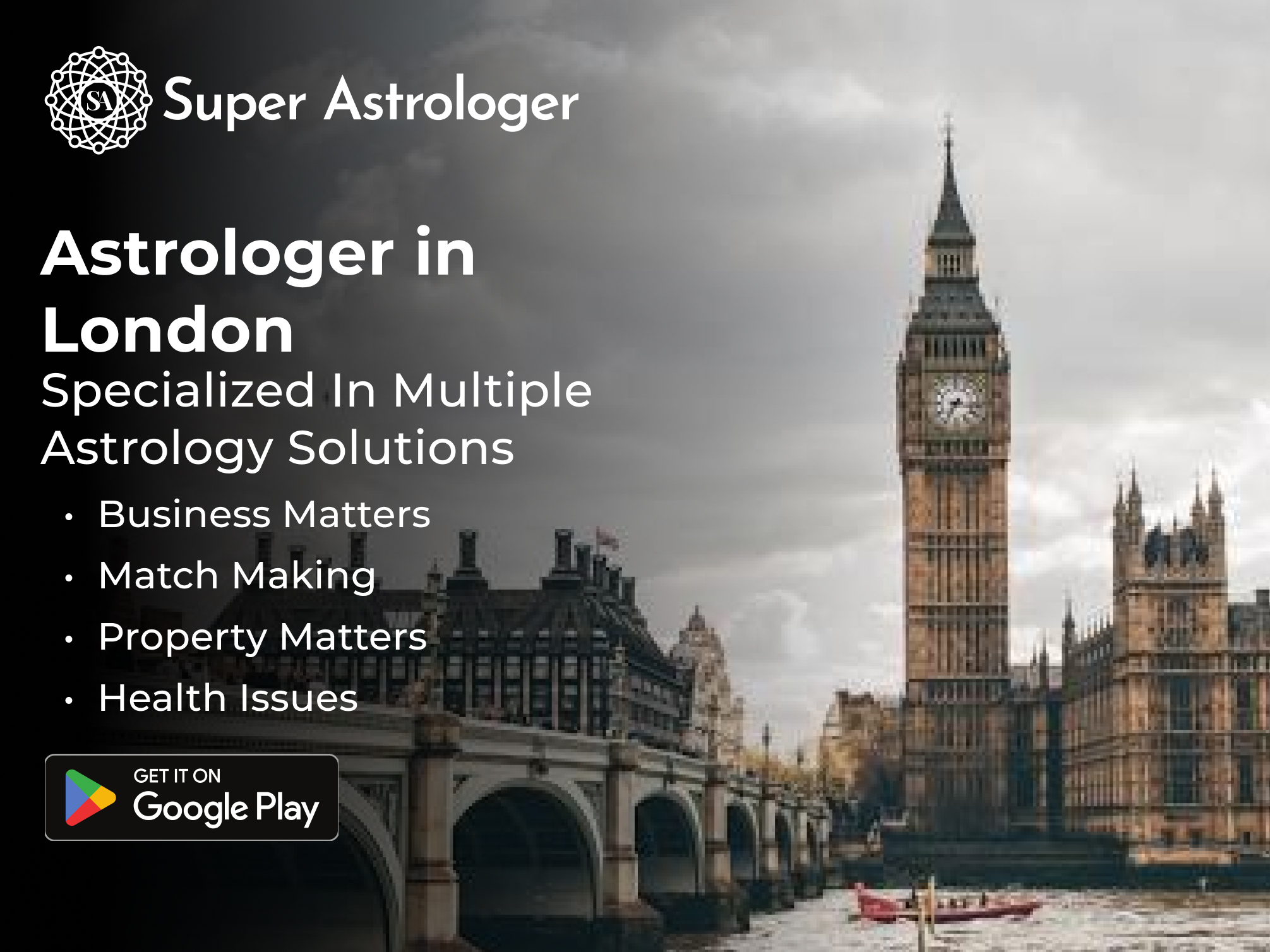 SuperAstrologer serves as your ultimate destination for astrology services on the internet in London. We possess the best astrologer in London City, who possesses the capability to assist you with any issues or inquiries you may have. Whether you desire to gain insight into your future, enhance your relationships, boost your career, or accomplish your goals, SuperAstrologer can provide you with guidance utilizing the profound wisdom of the celestial bodies. Our online astrology services are simple, convenient, and reasonably priced. You are able to select from a variety of options, such as phone, chat, video, or email consultations. SuperAstrologer stands as the best astrologer in London, equipped to enhance your life through the application of astrology.